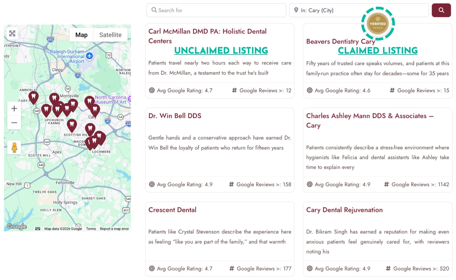 All of this is completely free. Claiming your listing carries no cost and no obligation. We offer enhanced listing options for practices that want to stand out further — but the full claimed profile above is yours at no charge.
